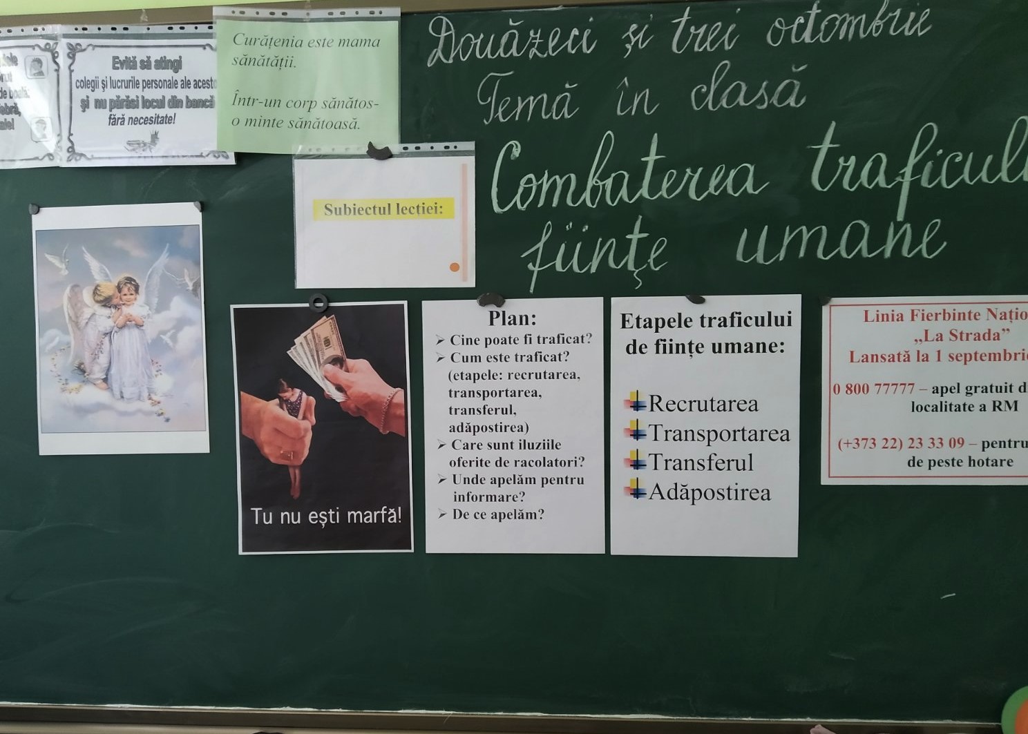 Drept urmare elevii au fost familiarizați cu termenii trafic de persoane, exploatarea unei persoane, victimă, traficant de persoane și prezentate cauze și statistici cu privire la acest fenomen prin intermediul materialelor power point și vizionarea de filme educative, astfel identificându-se modalități de prevenire și soluții de combatere a traficului de persoane.