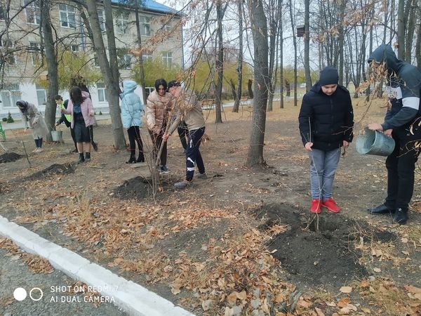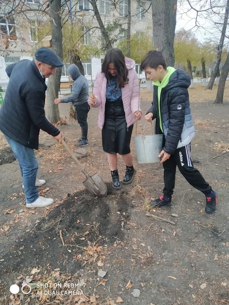 , și anume la sădirea puieților în curtea liceului
