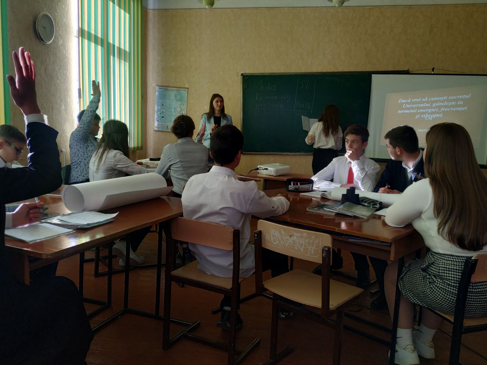 În acest context, a fost desfăşurată o oră publică de fizică, la clasa a VIII-a, sub îndrumarea doamnei profesor Vremea Lilea. Ora a fost un model de activitate didactică, de activare a elevilor, de parcurgere cu rigurozitate a tuturor secvenţelor lecţiei, de utilizare a celor mai diferite şi diferenţiate strategii didactice. La final s-a făcut analiza şi evaluare activităţilor desfăşurate, sub coordonarea doamnei Molodaia Marina, metodist principal DÎTS Briceni, responsabilă de disciplina şcolară Fizica.